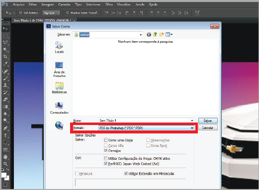 Na próxima janela, selecione o "Formato" de arquivo "PDF do Photoshop (*.PDF, *.PDP)"